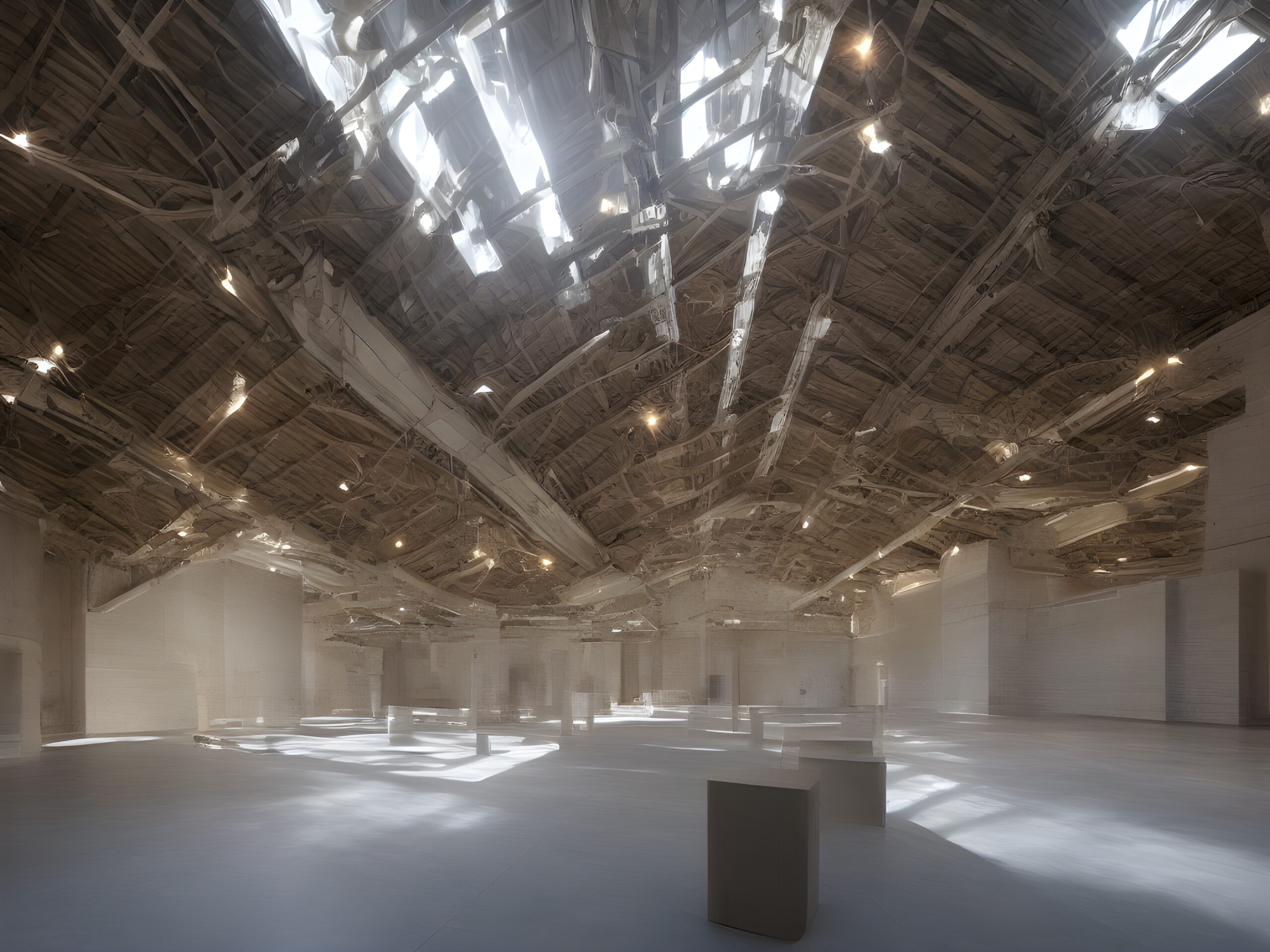 The pieces belonging to the Unconstructed Spaces collection were produced by artificial intelligence, specifically utilising the text-to-image machine learning technology known as Stable Diffusion, specifically version 1.4. The images were generated using the following sentence as a text prompt: